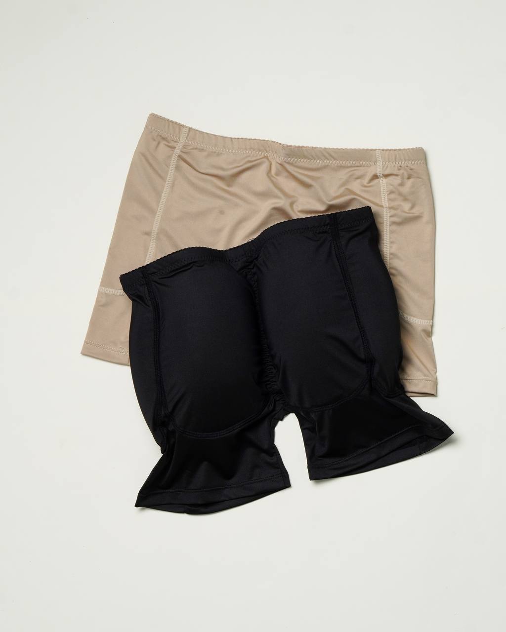 گن پروتزدار چهار تیکه کوتاه مشکی یک گن فوق العاده برای فرم دهی به باسن از دو جهت پشت و بغل ران می باشد.
