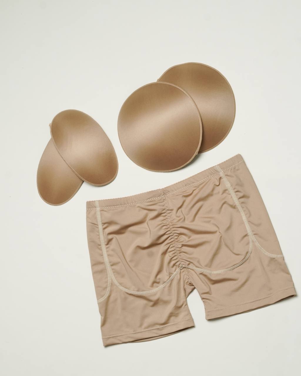 گن پروتزدار چهار تیکه کوتاه کرمی یک گن فوق العاده برای فرم دهی به باسن از دو جهت پشت و بغل ران می باشد.